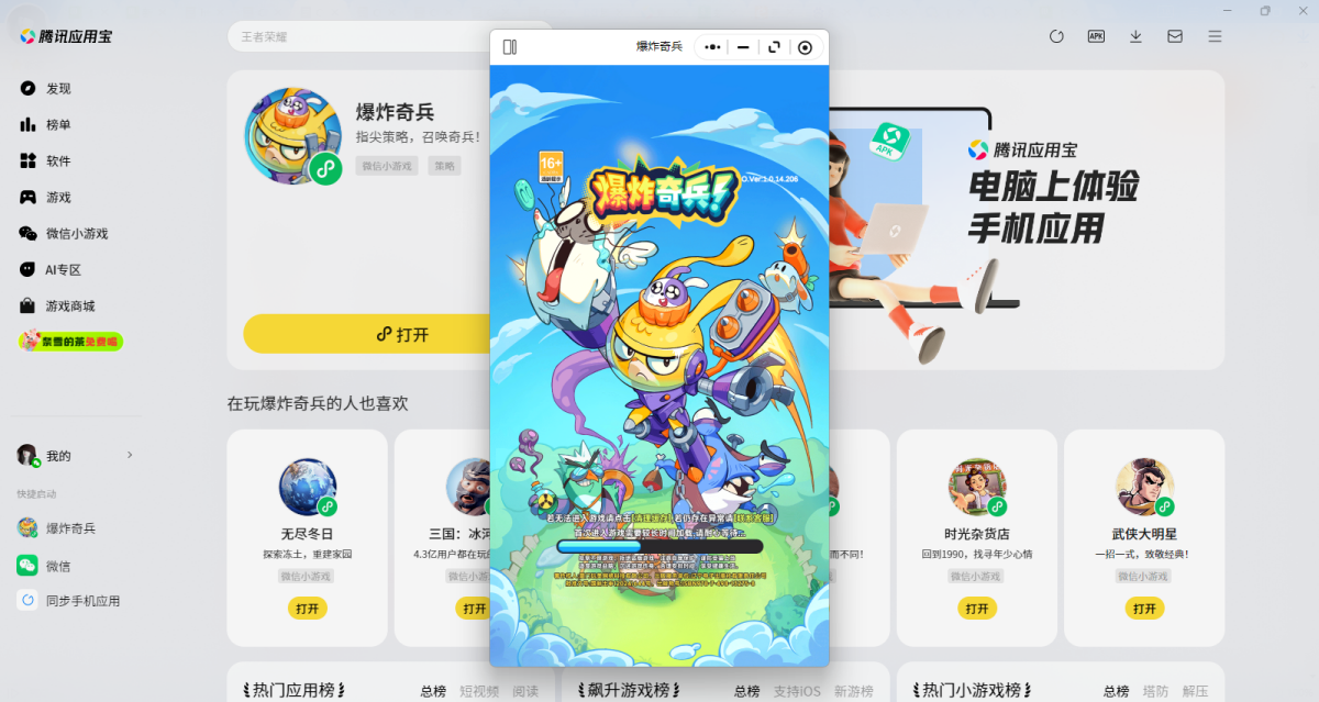 - 爆炸奇兵微信小游戏电脑版1.0.14.206 正式版 简体中文 win7或更高版本 2026-03-18