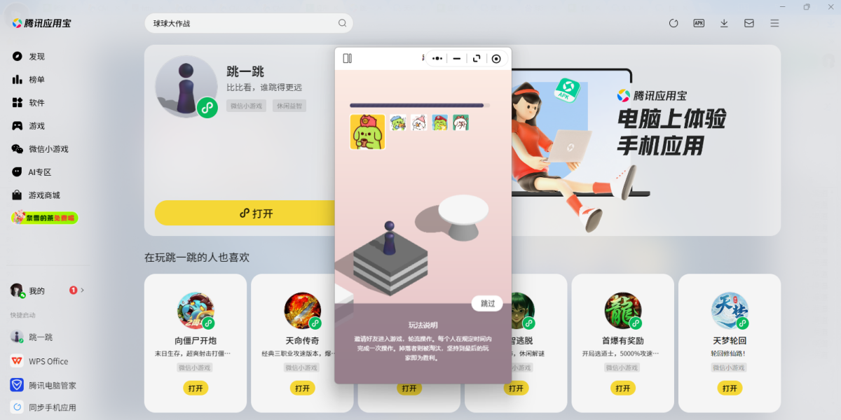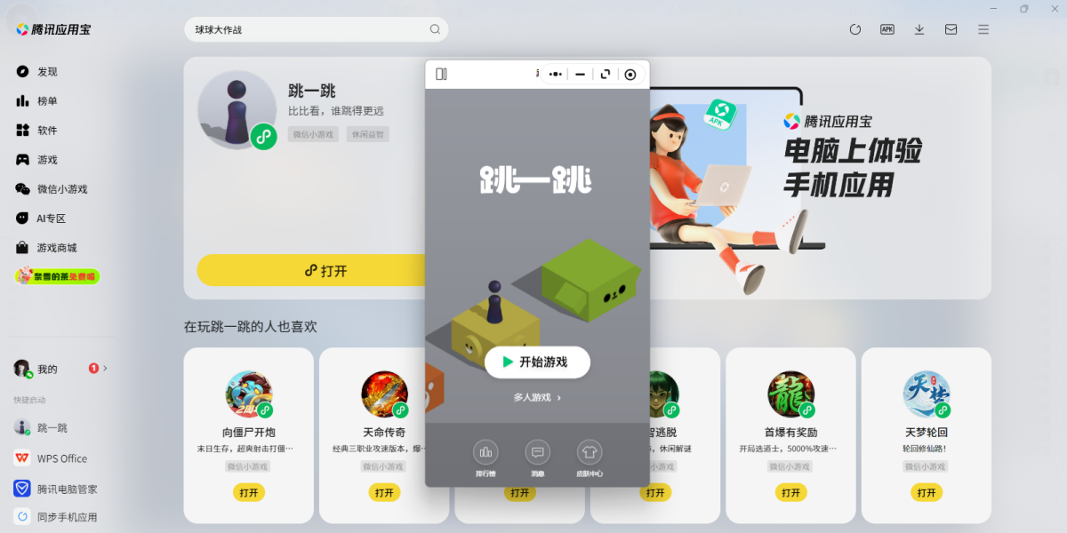 - 跳一跳微信小游戏电脑版1.0 正式版 简体中文 win7或更高版本 2026-04-07