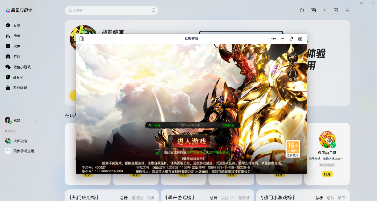 - 战影破穹微信小游戏电脑版1.0.140983 正式版 简体中文 win7或更高版本 2026-01-29