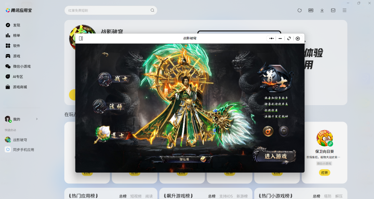 第二步:应用宝电脑版打开后会直接调起游戏,选择微信扫码或其他方式登录账号