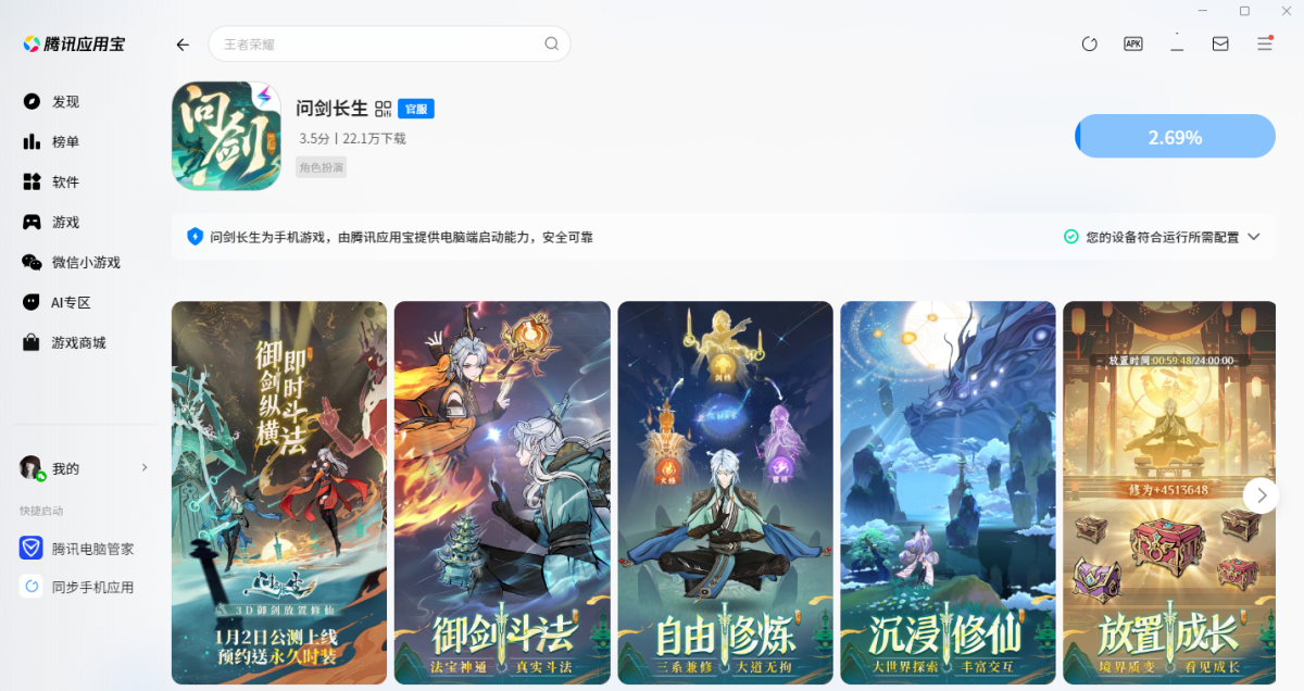 - 问剑长生手游电脑版1.3.26011601 正式版 简体中文 win7或更高版本 2026-03-06