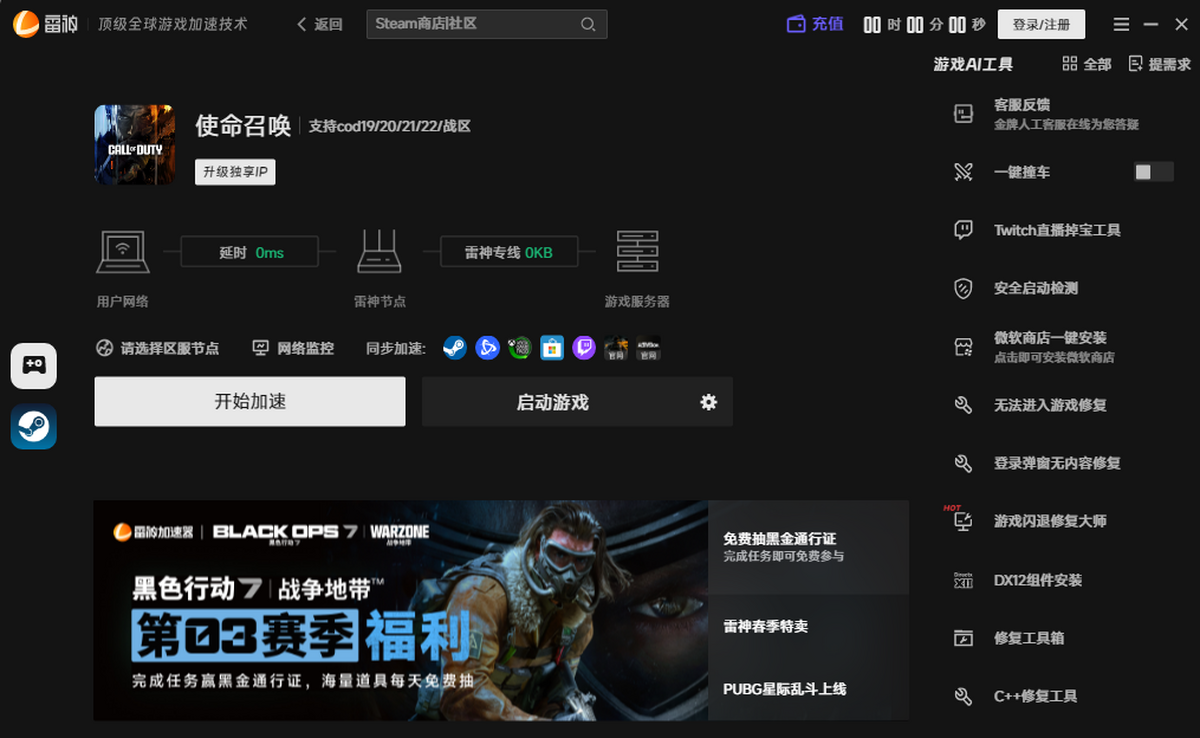 雷神加速器针对目前市面上主流游戏平台提供全方位游戏下载加速服务,包括Steam、Origin、Epic、Uplay、Xbox、PS、Steam Deck、战网客户端等;