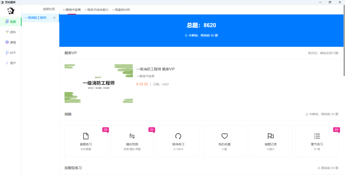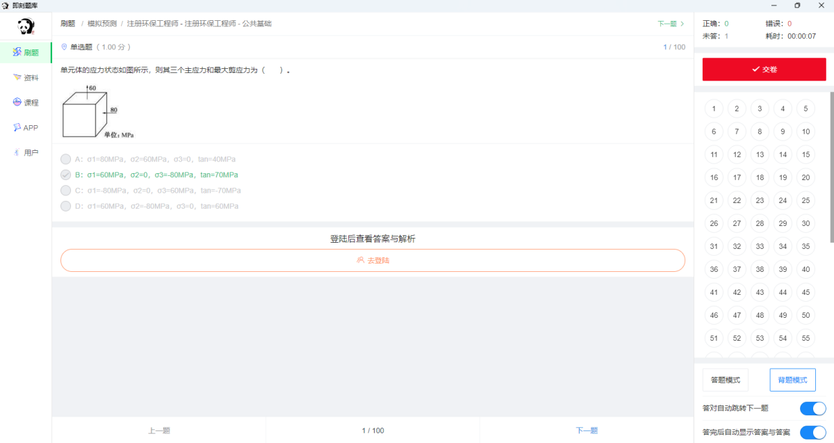 全站有近千万道题目,2万套真题,1万套模拟和预测题。可以按章节练习,真题练习,模拟练习;还可以按题型(单选题,多选题,判断题)等不同题型分别练习;更有题目收藏,练习记录,错题记录等丰富功能。