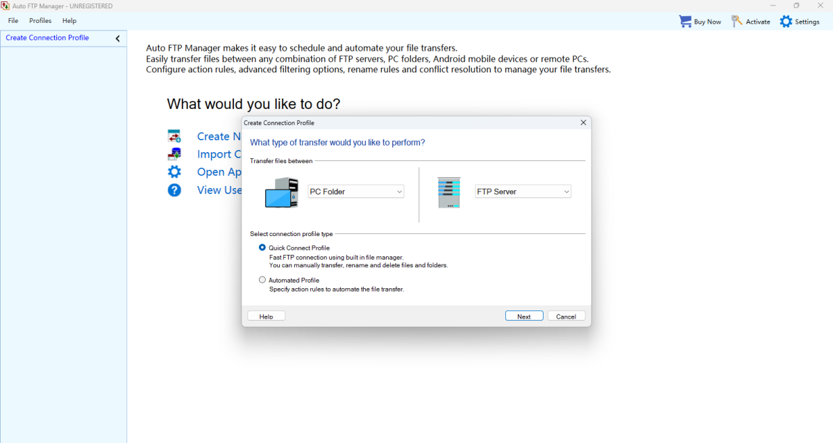 通过将所有文件传输安排在特定时间,可以按小时、每日、每周、每月、应用启动时重复,或者让自动FTP管理器监控文件夹的变更,从而节省时间