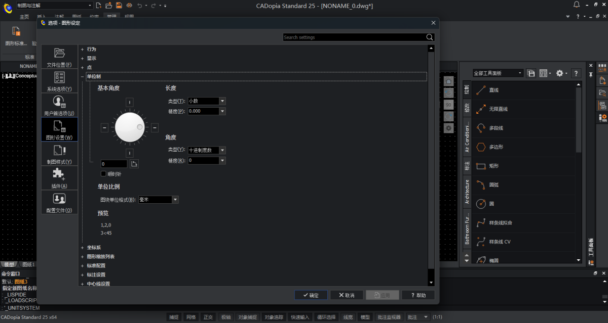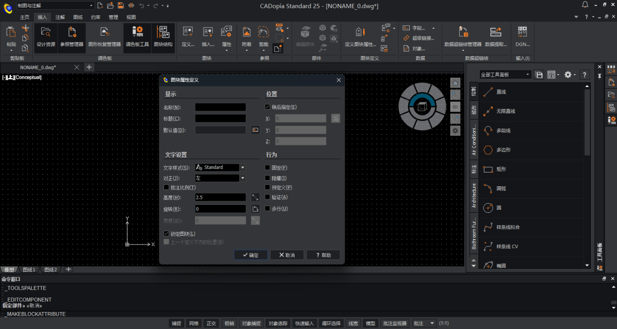 CADopia 支持标准命令界面以及菜单、工具栏、别名和键盘快捷键。