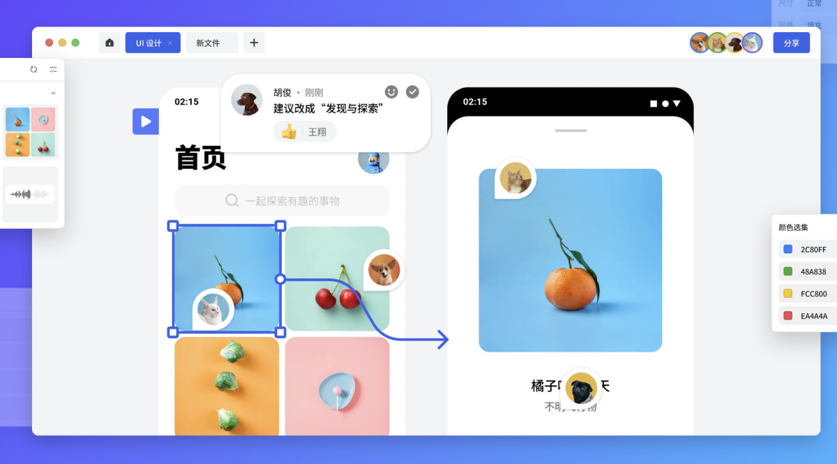 "工具即流程"的理念重构产设研协作模式,整合原型设计、界面设计、评审交付等环节,避免因切换工具导致的信息割裂,同一文件中实时协作、评论和查看更新,无需反复导出或上传文件,避免了版本混乱和沟通延迟