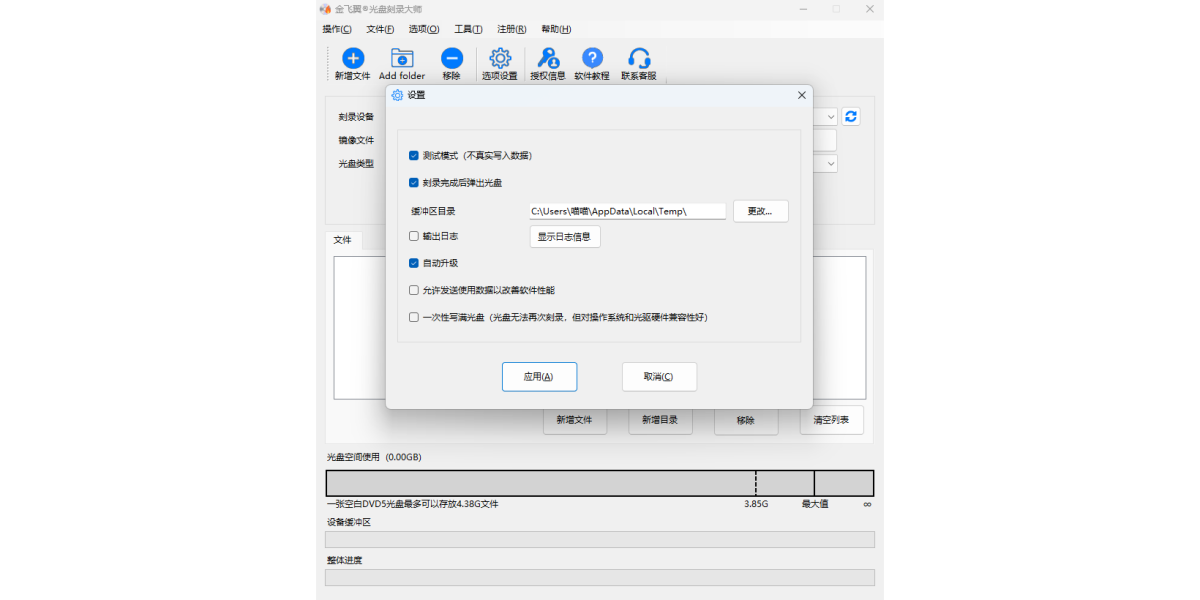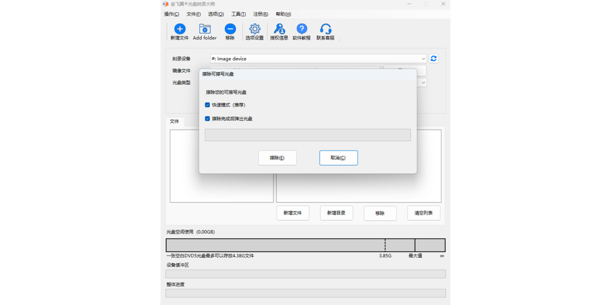 6、软件界面简洁。软件以图形化的方式显示您的光盘类型和当前添加的文件大小。