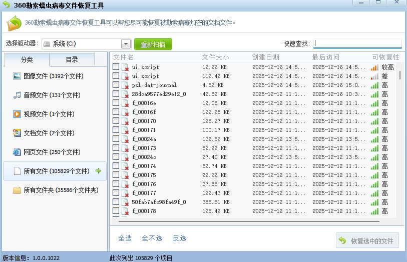 - 360勒索蠕虫病毒文件恢复工具1.0.0.1022 正式版 简体中文 win7或更高版本 2025-12-16