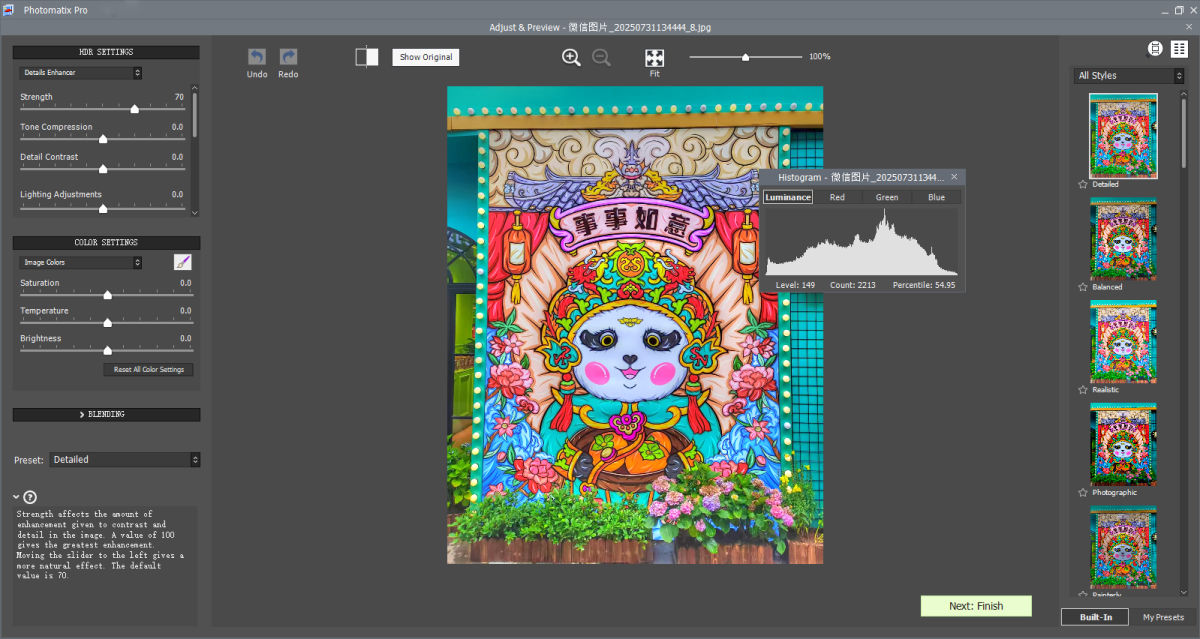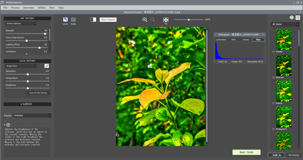 除了 HDR 处理外,还支持对单张照片进行色彩调整、白平衡校正、降噪等操作,提高照片的质量。