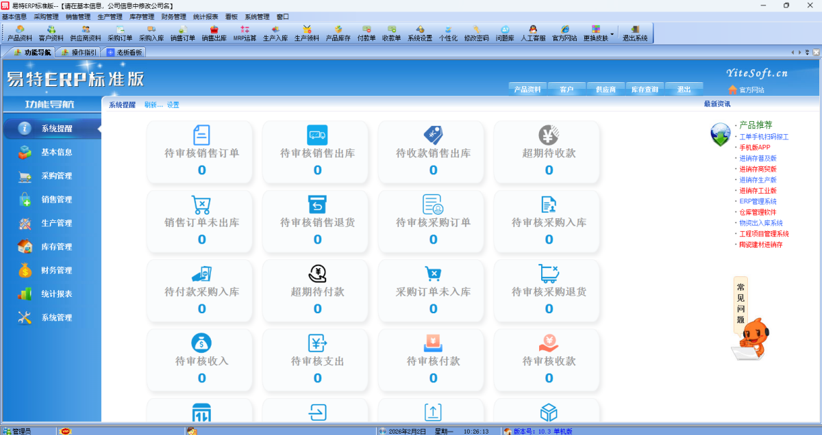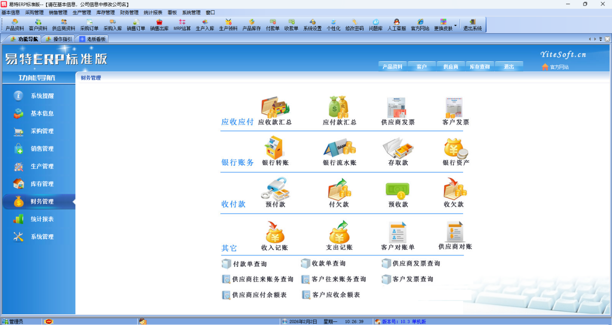- 易特ERP标准版10.3 正式版 简体中文 win7或更高版本 2026-02-02