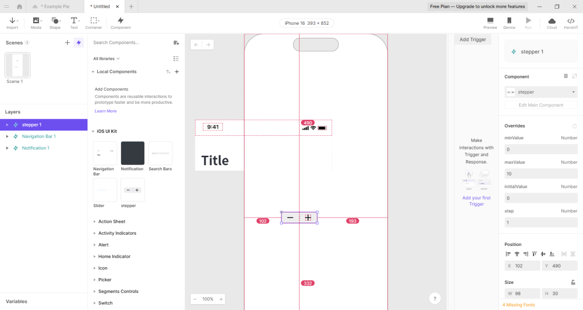 ProtoPie是为车载HMI设计/游戏设计/App设计/智能手表设计等领域的UI UX设计师提供的一款原型设计工具,支持Figma/Sketch导入、原型离线在线演示、自动生成开发文档。可制作传感类、条件逻辑类、多屏幕、软硬件等多模态交互,是当今UI/UX设计师必备工具。ProtoPie是将交互设计创意转变为高保真原型的最简单的工具,ProtoPie可以创造全新的数字体验,并在智能手机和电脑,以及电视和汽车控制屏幕等真实的屏幕里进行测试,它使交互设计成为工作流程的中心。ProtoPie云端使原型共享变得更简单跨界。如果想要实现软硬件交互等更丰富的交互体验,请将原型添加到ProtoPie Connect!