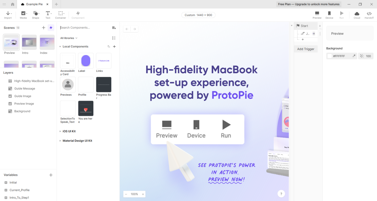 与你所惯用的设计工具一起协同:ProtoPie可以无缝衔接设计工具,例如Figma, Sketch, 和 Adobe XD。