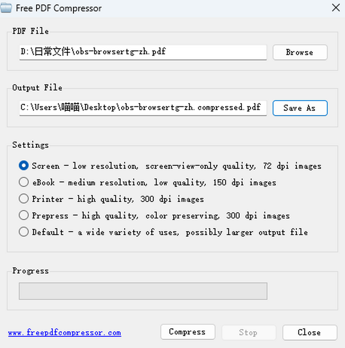 用法非常简单,只需选择输入文件和输出位置,选择所需的配置,然后按一下按钮,应用程序即可开始压缩过程。