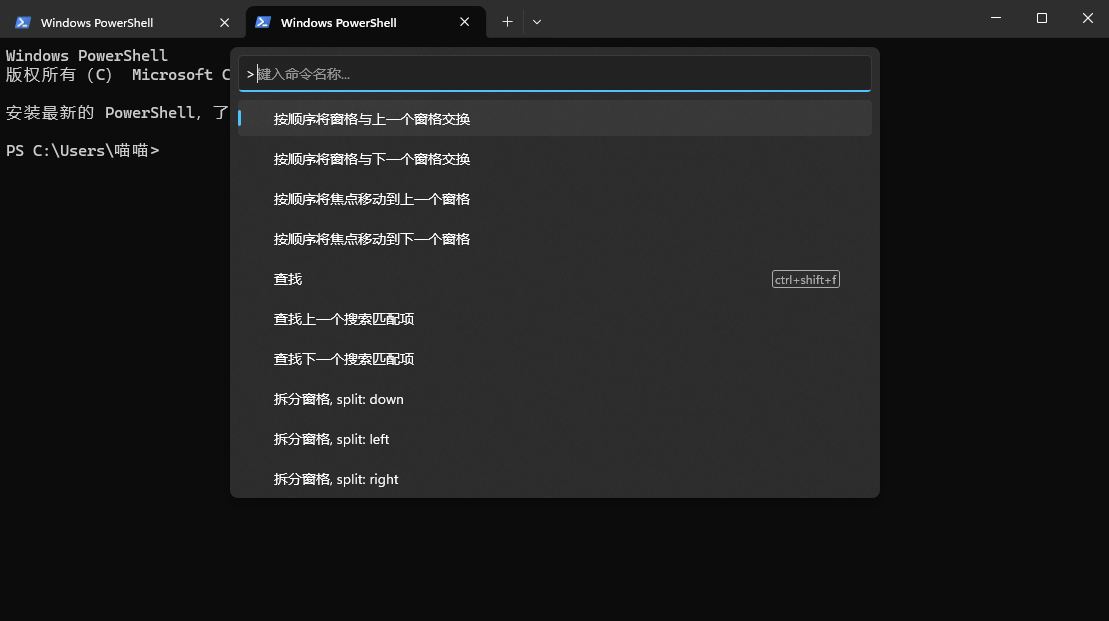 可在 Windows 终端中使用多种自定义命令,获得更加自然的体验。 如果不喜欢特定的键盘快捷方式,可以将其更改为你喜欢的方式。