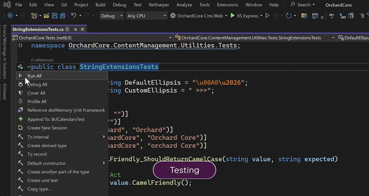 ReSharper 是您维护高质量代码库的必备伙伴。从运行和调试单元测试到提供高级调试工具和预测性调试器,我们可以满足您的所有需求。我们的自适应格式设置引擎支持多种编码风格,有助于确保您的代码整洁和一致。利用 AI 检测潜在问题或自动生成单元测试,使代码维护更高效、更省力。