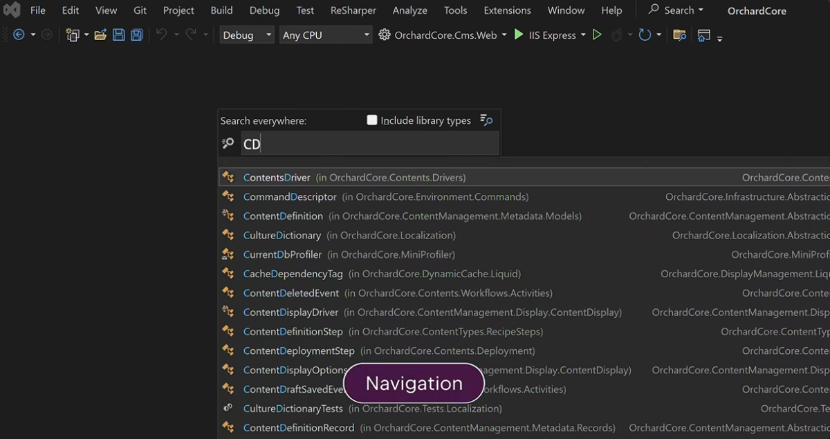 通过帮助您快速跳转到类型、类型成员、文件、用法、基本符号、声明或实现的功能,轻松浏览复杂的 .NET 代码库。利用便捷的快速文档功能和 AI 赋能的解释,加快您对任何代码的理解和掌握。
