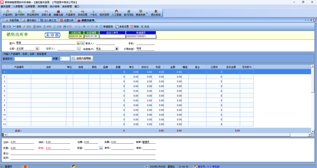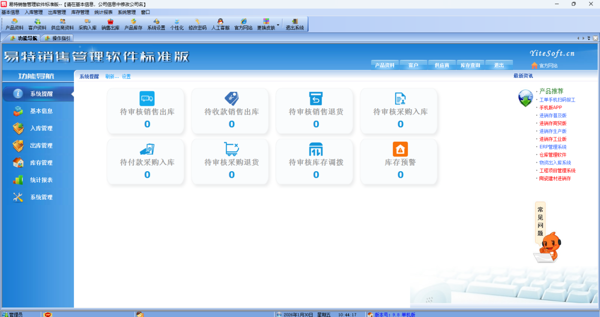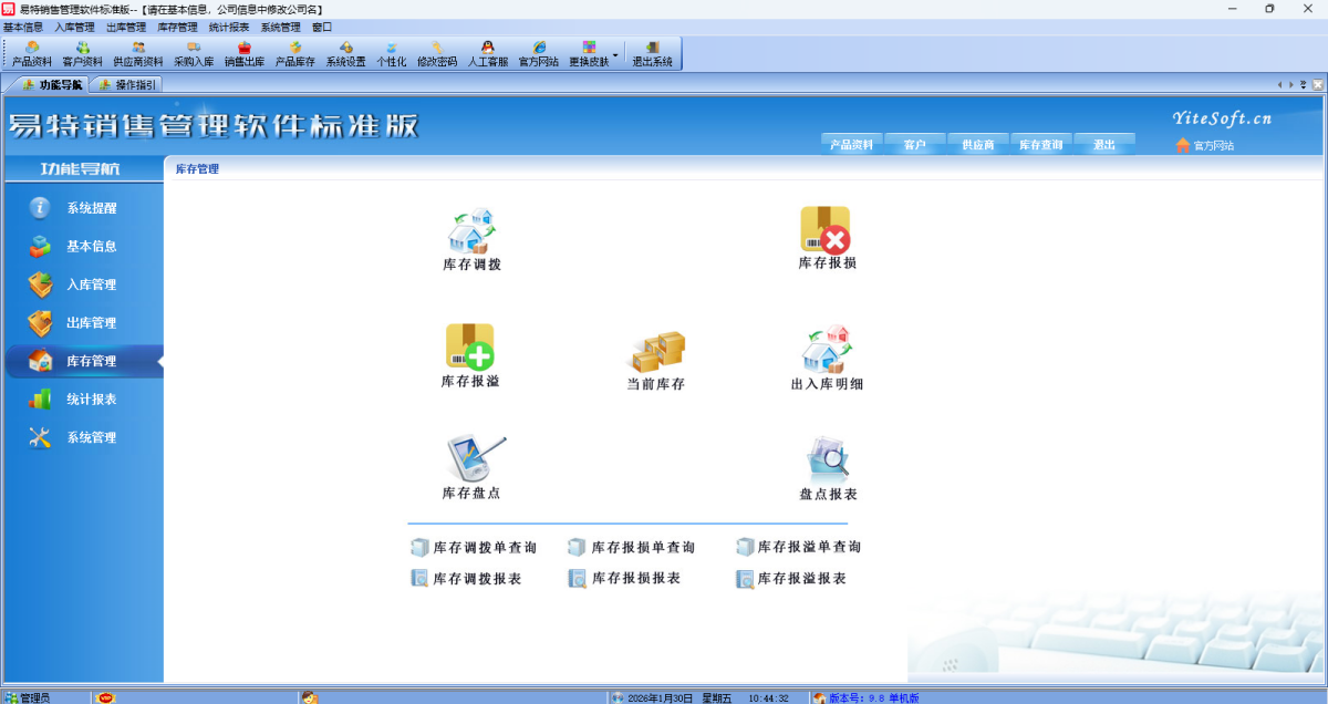 - 易特销售管理软件标准版9.8 正式版 简体中文 win7或更高版本 2026-01-30