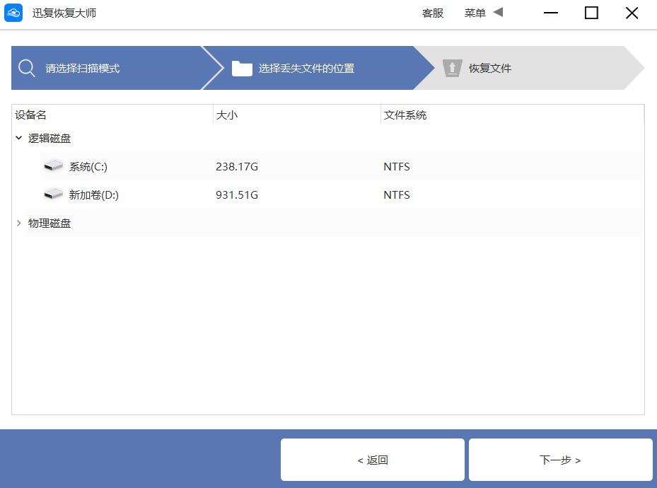 迅复恢复大师软件是一款专门用于磁盘分区恢复的高级工具,可以帮您快速恢复删除的文件,恢复数据一步到位,零基础也能快速上手,支持电脑数据恢复、硬盘格式化恢复、U盘数据恢复、内存卡数据恢复等。
