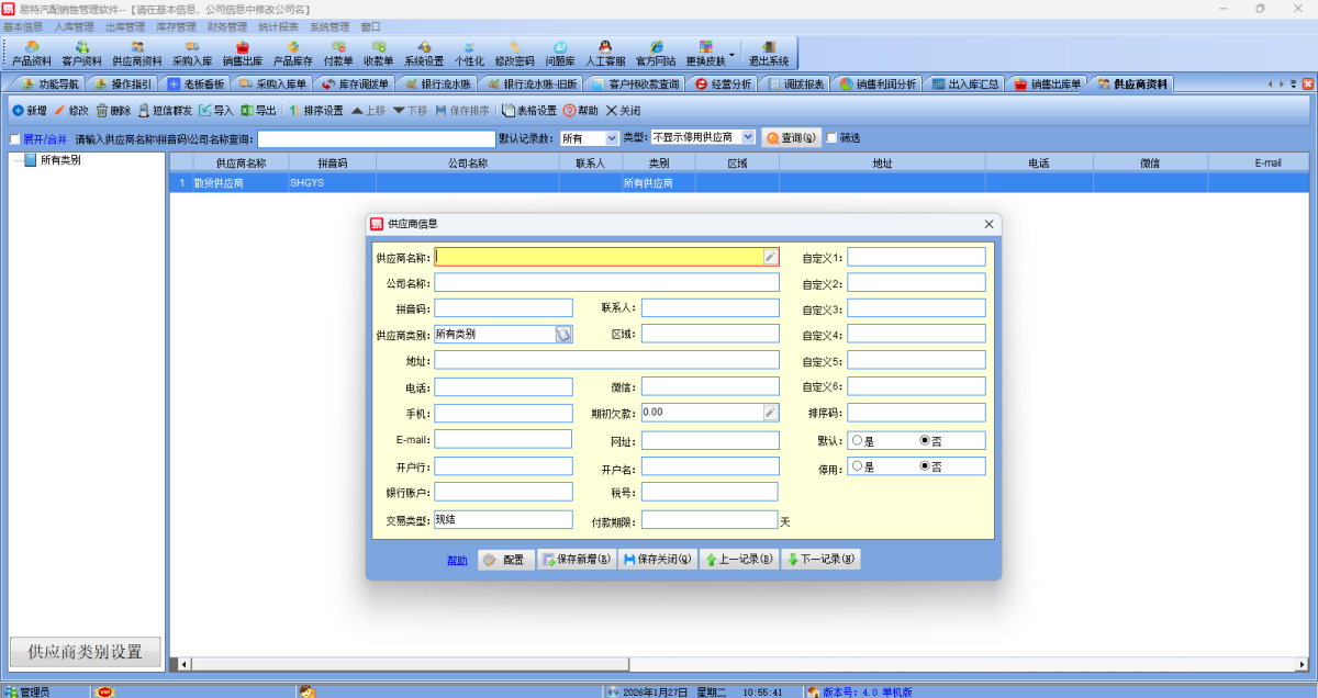 基础数据:商品信息,供应商,客户,商品分类,仓库,银行等基本信息的设置。
