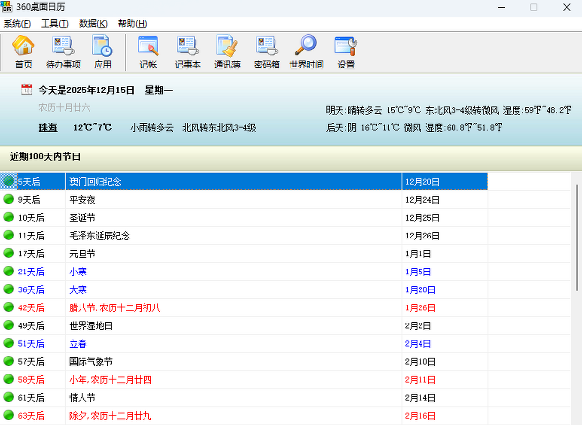 - 360桌面日历6.9.4 正式版 简体中文 win7或更高版本 2025-12-15