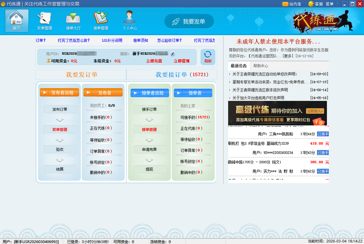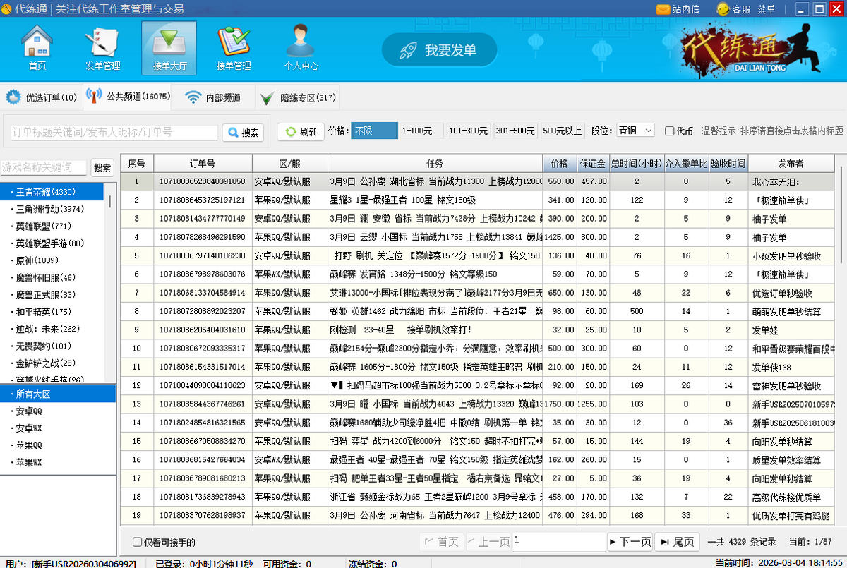海量代练订单,供您选择,轻松赚钱。