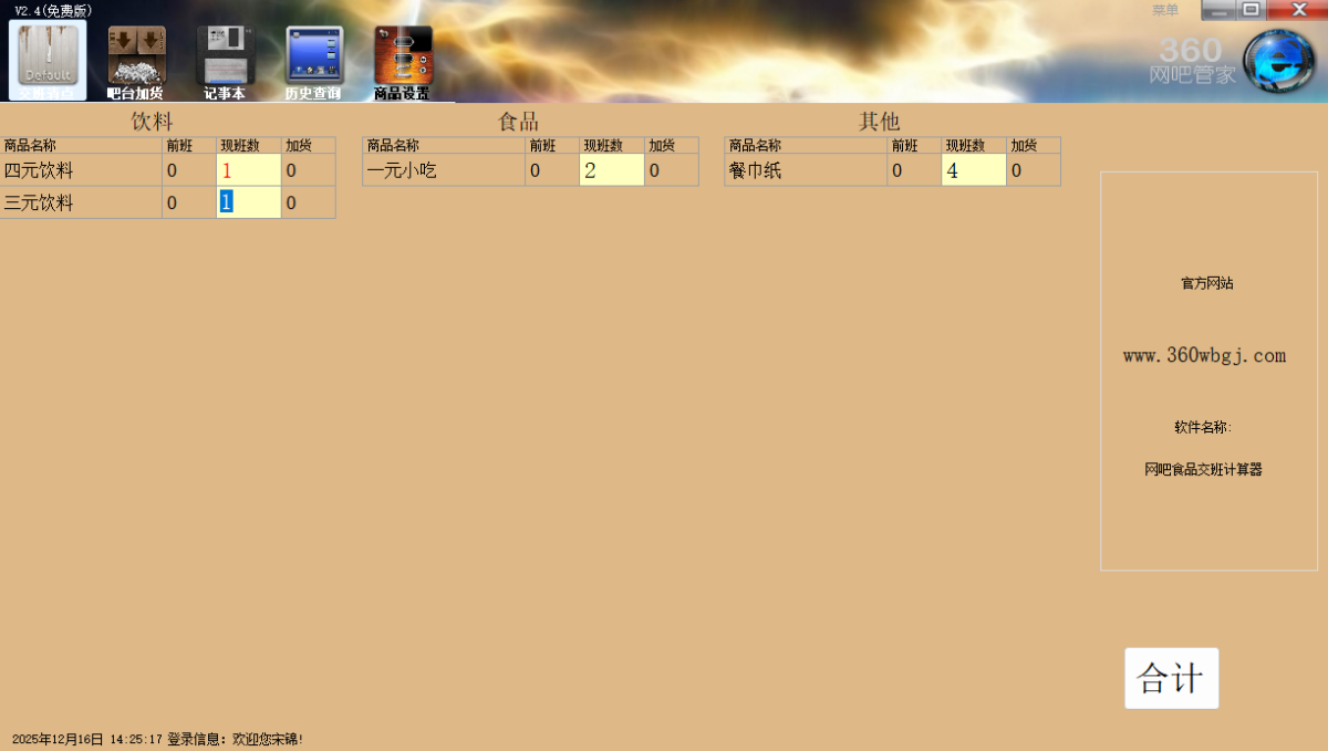 网吧交班计算器