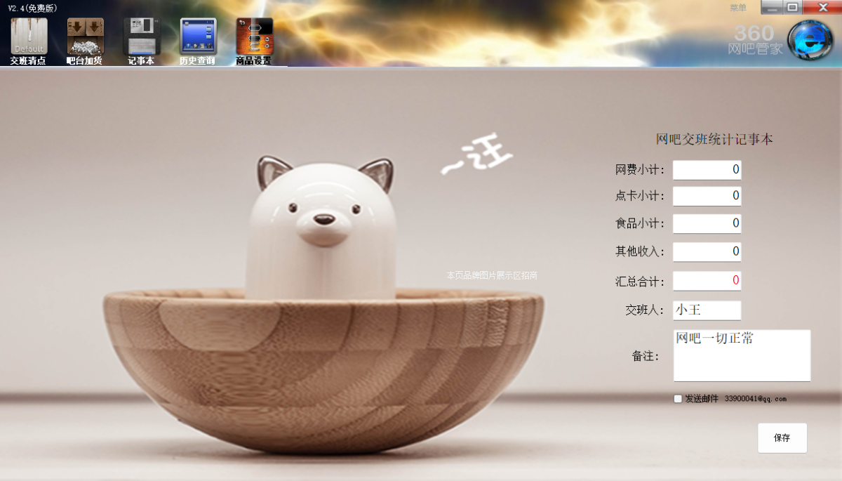 打印报表:每班次商品变动详细清单打印,集成网费及其它收用统计。