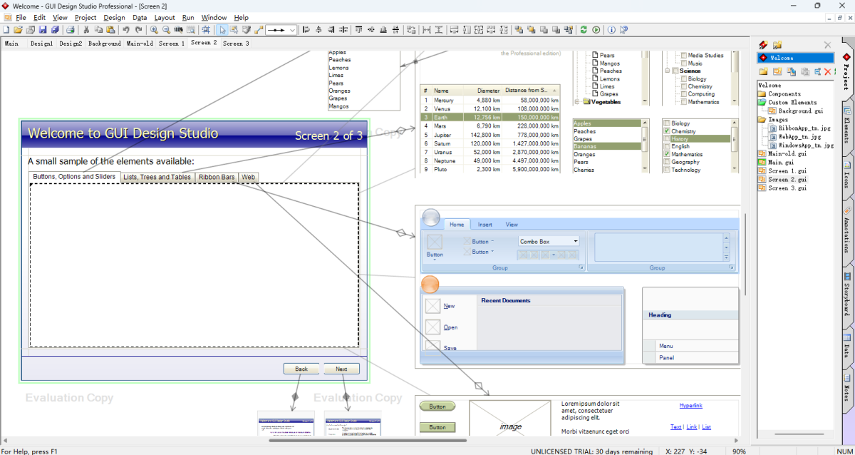 5、在不需要编写任何代码或脚本的情况下,使用标准元素绘制个性化的屏幕、窗口及控件,快速创建演示原型,并将它们整合展示操作工作流程然后运行模拟程序以测试设计。