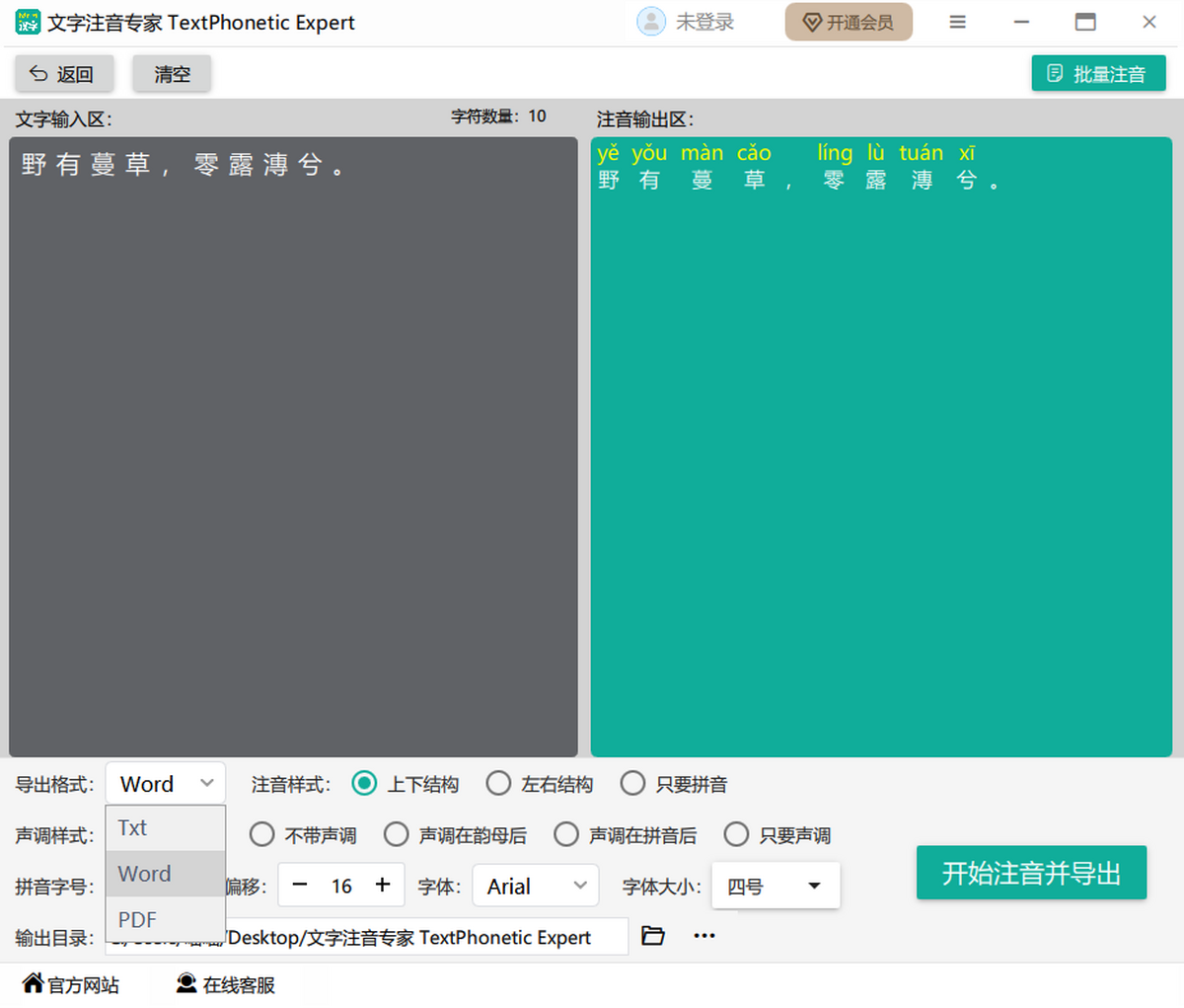 支持导出word,pdf,txt多种格式文件,音节准确,高效快速。