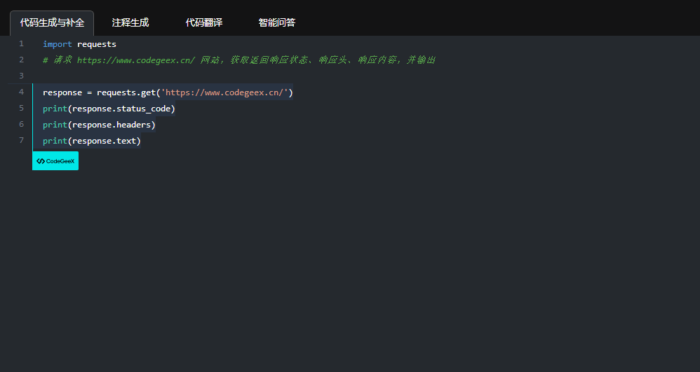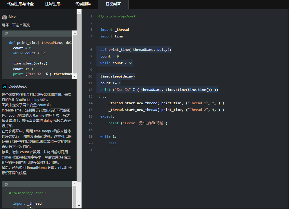 CodeGeeX可以根据自然语言注释描述的功能自动生成代码,也可以根据已有的代码自动生成后续代码,补全当前行或生成后续若干行,帮助你提高编程效率。