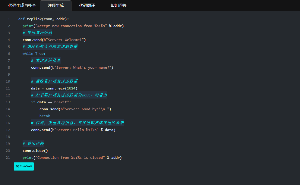 CodeGeeX可以给代码自动添加行级注释,节省大量开发时间。没有注释的历史代码,也不再是问题。