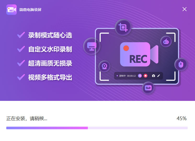 简鹿电脑录屏大师是一款适用于 Windows 系统的桌面屏幕录像软件,它支持PPT课件录制、游戏录像以及常规桌面操作录制;软件提供了全屏录制、区域录制、屏幕录制以及摄像头录制,在录制的视频中还可以加入修改的自定义水印,让你轻松录制在线课件、游戏、视频等等。