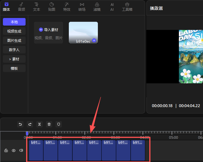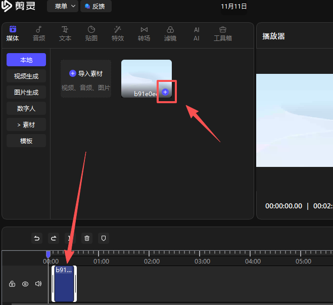 素材导入软件后,需要将素材添加到下方的轨道才能进行编辑。