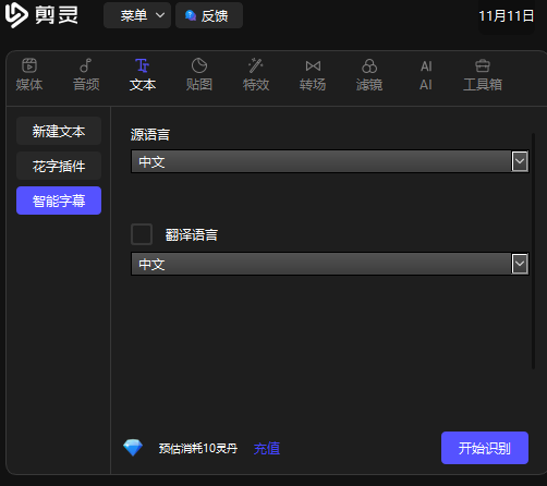 答:添加视频到轨道,选中视频,然后在文本-智能字幕中点击开始识别,会自动生成与声音一致的字幕。并且生成字幕,支持再次处理。