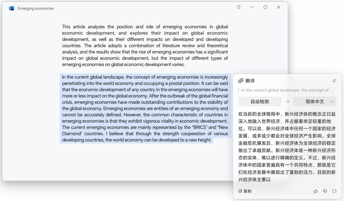 轻松一划选中文字后提供 AI 搜索、翻译、解释、总结等各类 AI 辅助功能(部分应用不支持 Magic 文本功能)。
