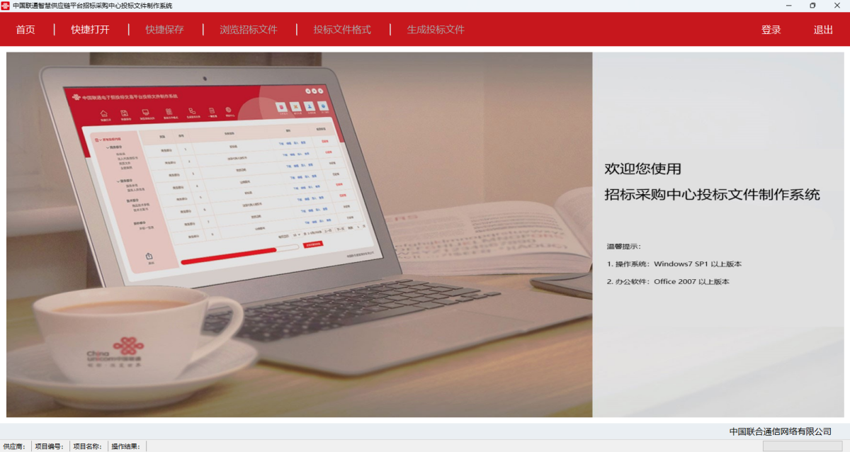 - 中国联通智慧供应链平台招标采购中心投标文件制作系统1.17.51.162 正式版 简体中文 win7或更高版本 2025-09-29
