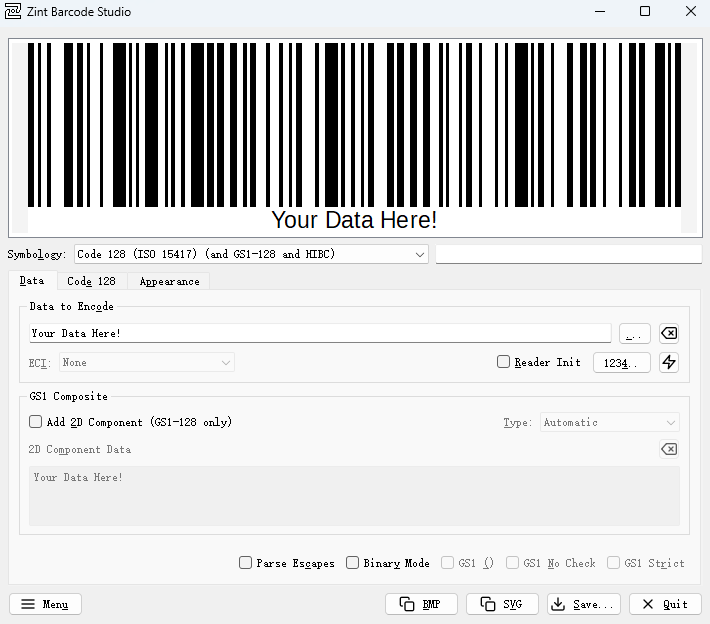 Zint Barcode Generator是一款开源的条码生成软件,支持批量生成条形码,支持的条码包括:Code 128, Data Matrix, USPS OneCode, EAN-128, UPC/EAN, ITF, QR Code, Code 16k, PDF417, MicroPDF417, LOGMARS, Maxicode, GS1 DataBar, Aztec等等,还支持生成二维码,生成的条码可输出为矢量图,条形码保存格式支持BMP、EMF、EPS、GIF、PCX、PNG、SVG和TIF,该项目主要使用 C 语言进行开发,同时也包含部分 C++、CMake、Shell 和 NSIS 代码。