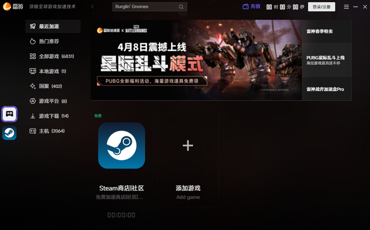 雷神加速器针对目前市面上主流游戏平台提供全方位游戏下载加速服务,包括Steam、Origin、Epic、Uplay、Xbox、PS、Steam Deck、战网客户端等;