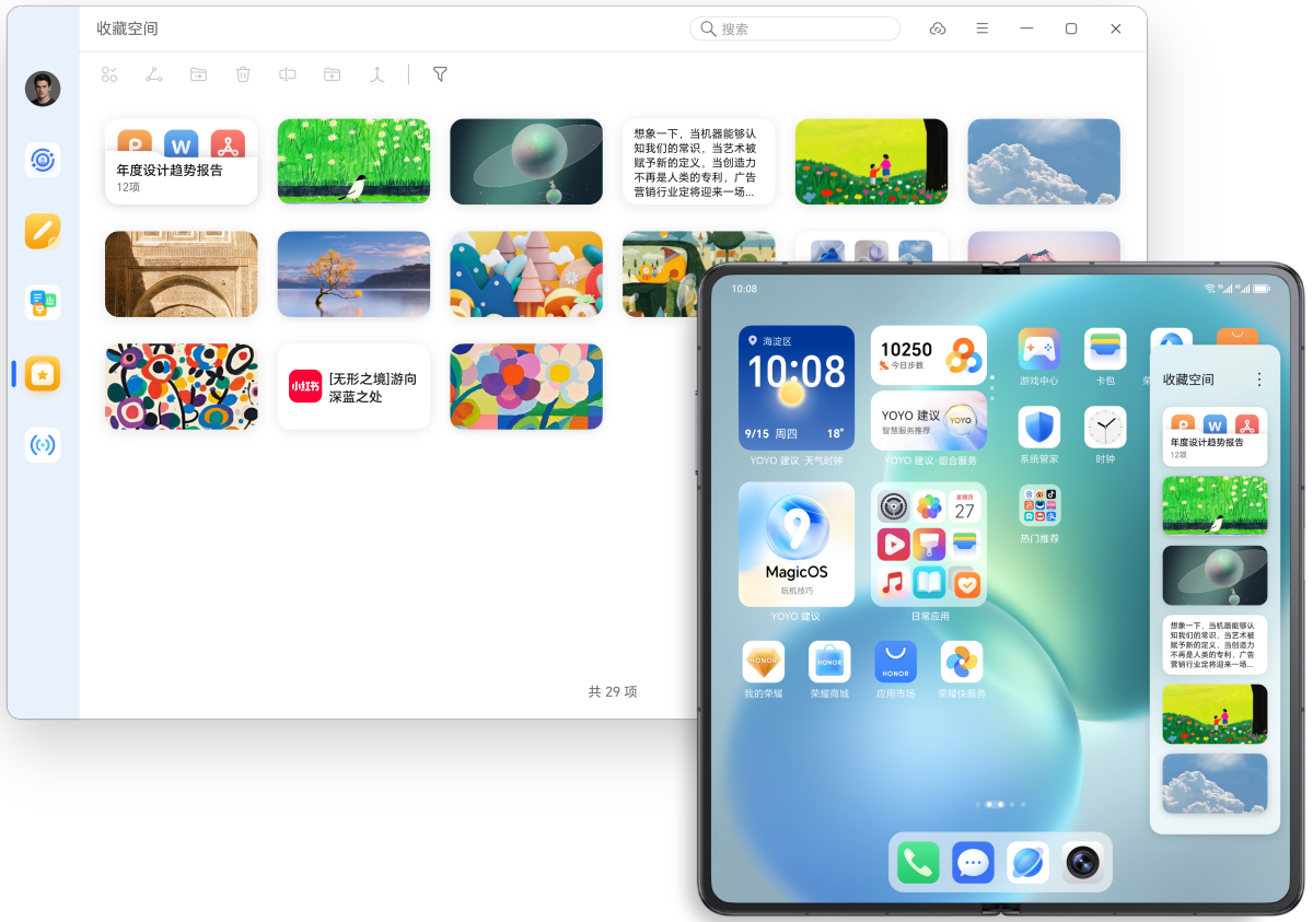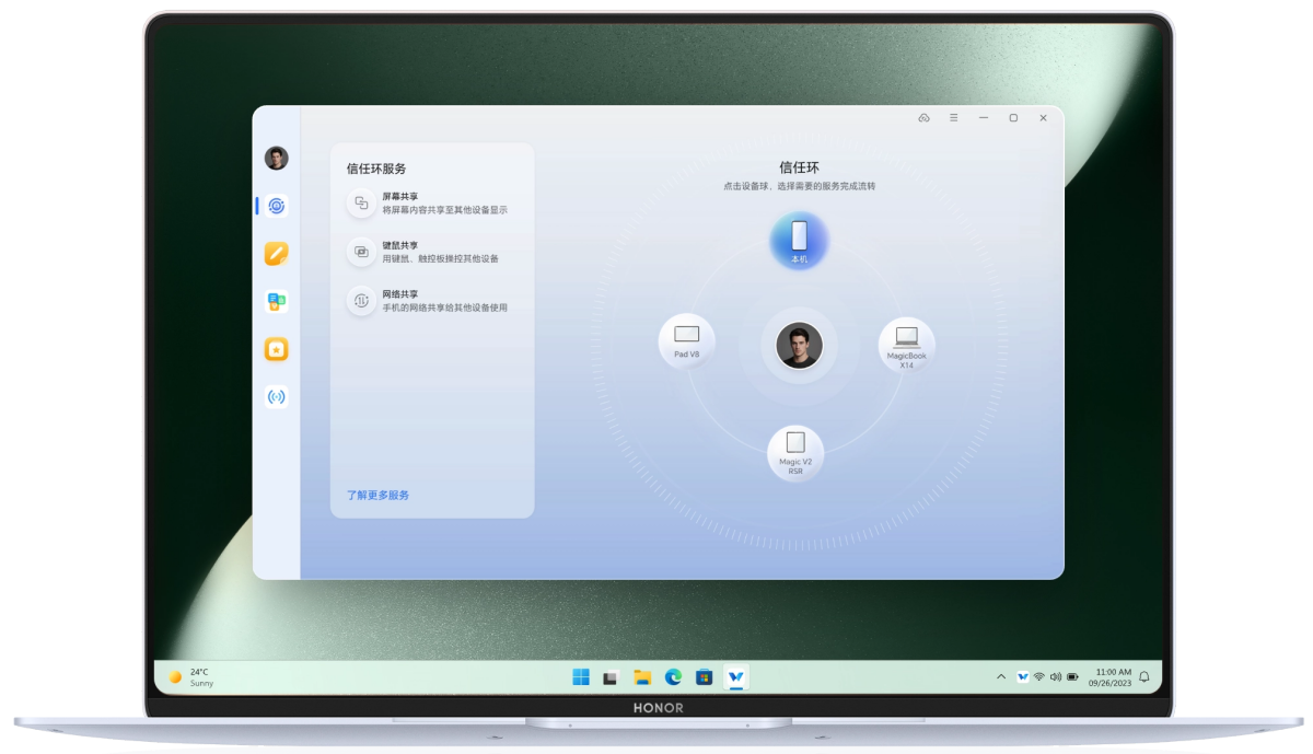 仅限安装荣耀电脑管家 18.0 及以上版本的部分荣耀MagicBook 笔记本,笔记云同步、收藏空间内容多设备共享、屏幕共享及信任环部分功能需要配套 MagicOS 8.0 及以上版本的荣耀平板、荣耀手机支持。