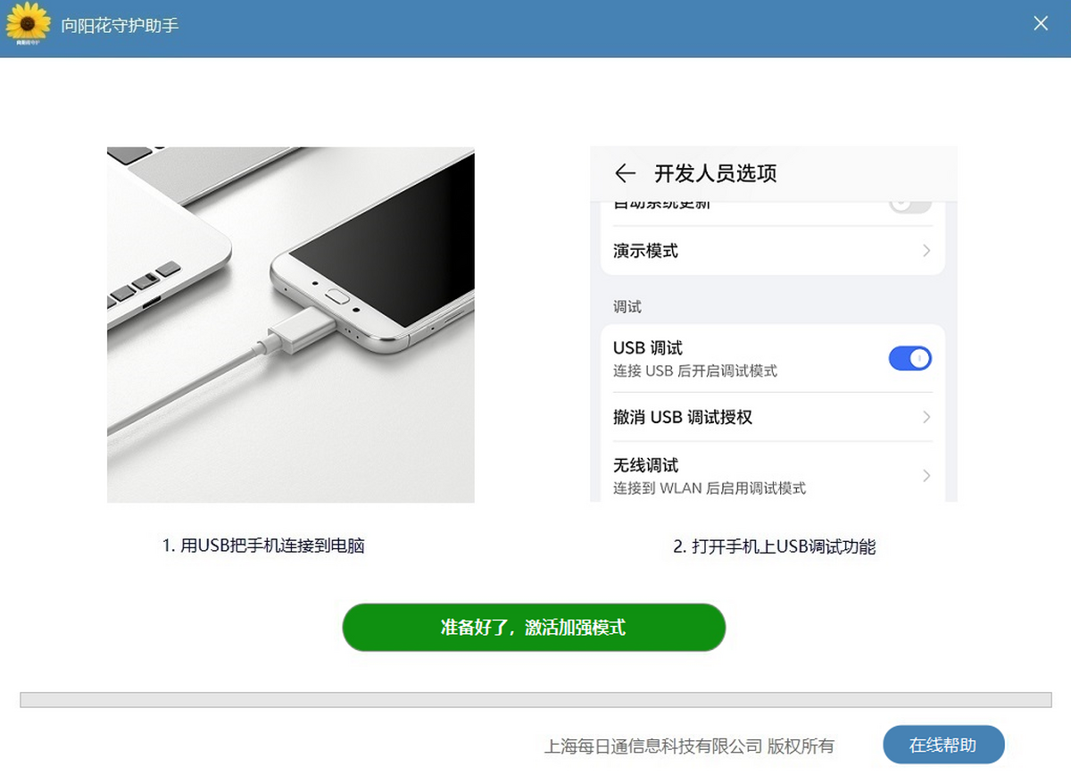 可支持主流Android系统的手机或平板,包括各种主流品牌和型号,各种版本该工具仅配合向阳花守护孩子端的通用版使用,其他版本无效。