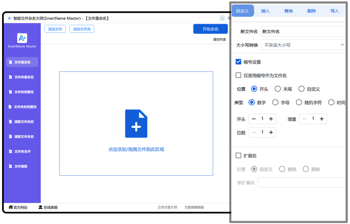 支持数字、字母顺序命名,或按顺序为多个文件名添加字母、数字编号