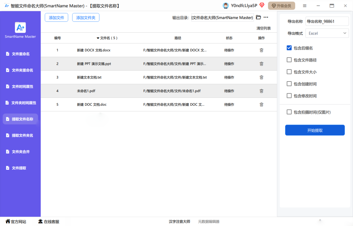 一键批量提取文件名,支持将文件名导出成excel、word、txt格式,大大提升工作效率