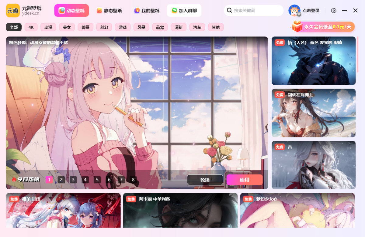 动态壁纸库每日更新,分类详尽,带来生动活泼的桌面体验,仿佛置身画中。