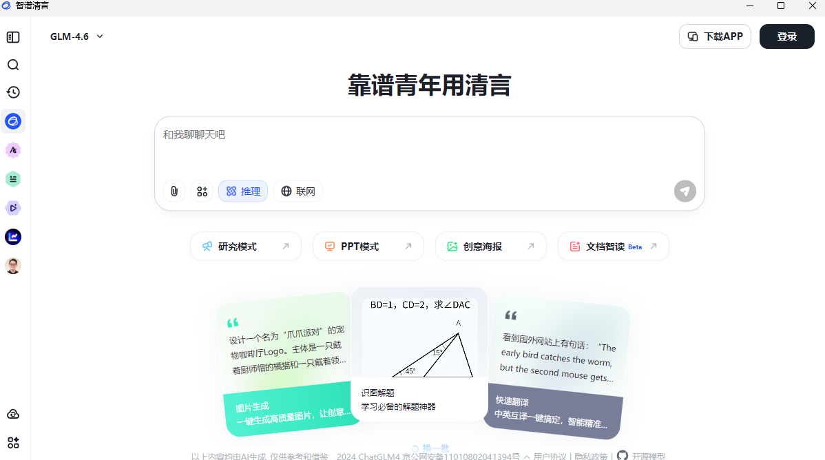 - 智谱清言1.0.37 正式版 简体中文 win7或更高版本 2024-07-16