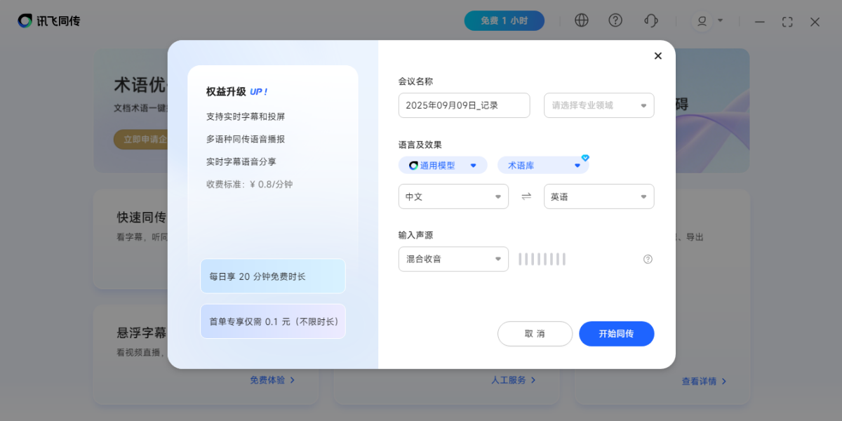 - 讯飞同传5.0.2099 正式版 简体中文 win7或更高版本 2025-07-04