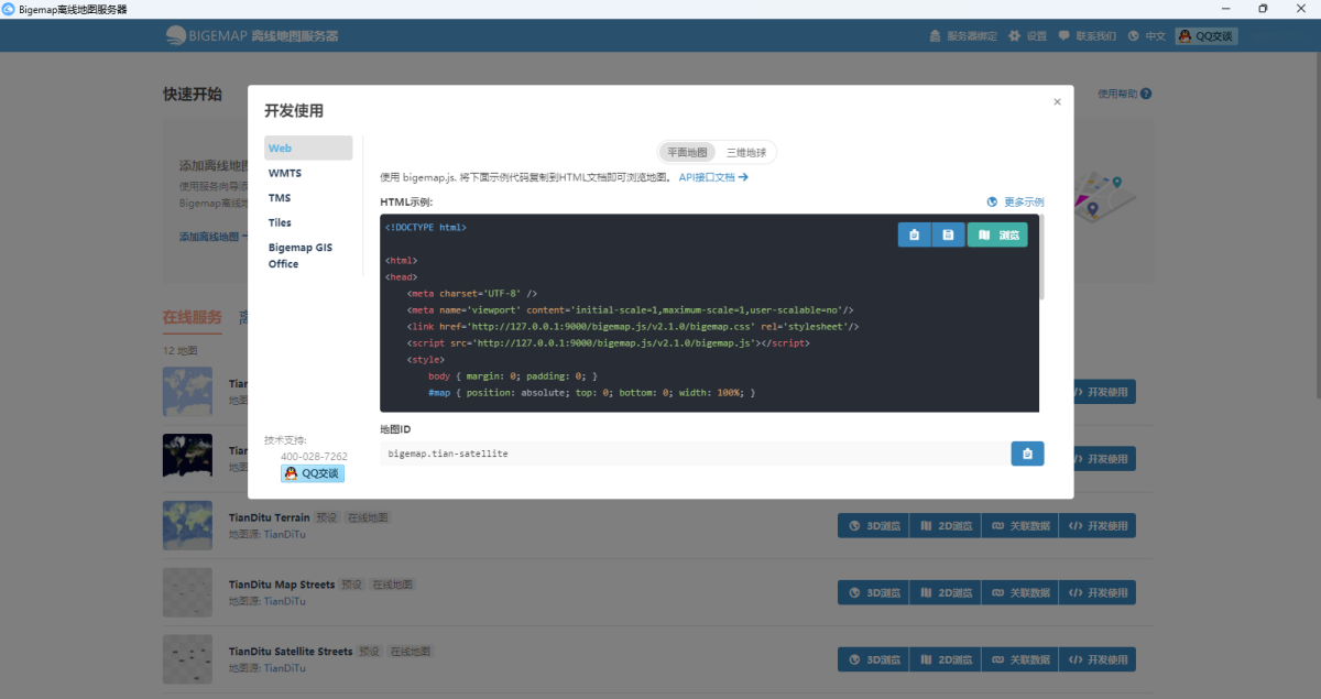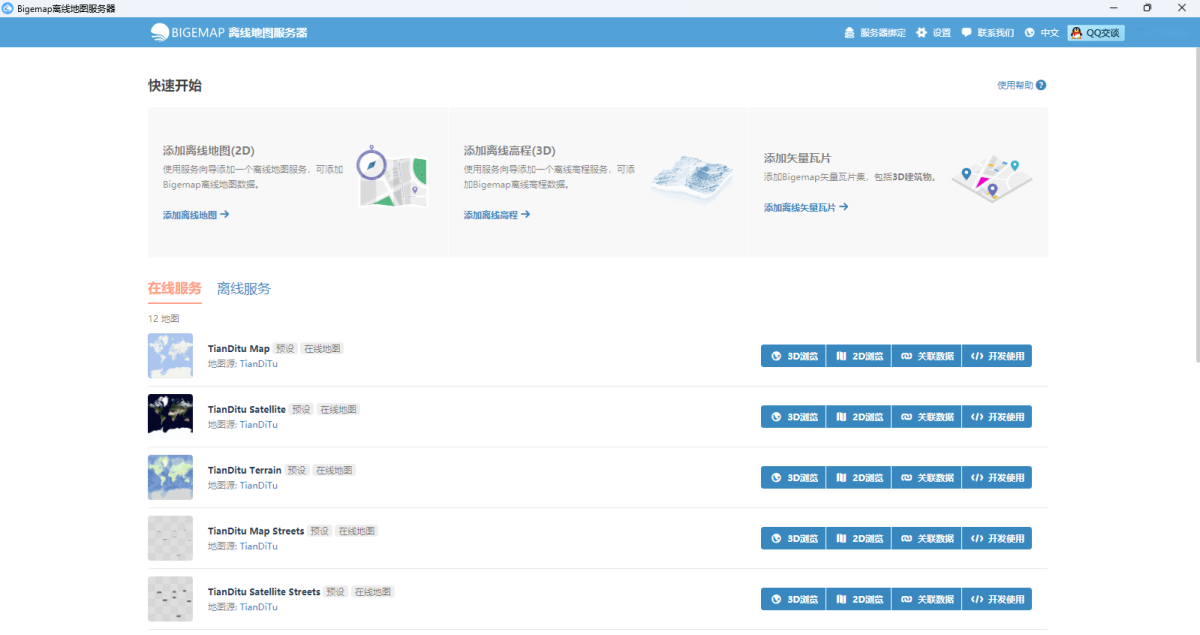 BIGEMAP离线地图服务器(Bigemap Server for 3D),一站式搭建离线地图服务器,支持多种地图离线发布;提供快速WEB应用、WMTS、TMS等服务;支持二维地图及三维地球二次开发;数据集管理,快速发布矢量数据。软件可以用于:测绘、测量、规划、设计、国土、交通、林业、农业、水利、水保、水文、地理、地信、电力、地质、公路、路桥、市政、环保、环评、建筑、景观、通信、遥感、地勘、物探、地矿、GIS、公安、管线、等等几十个行业。