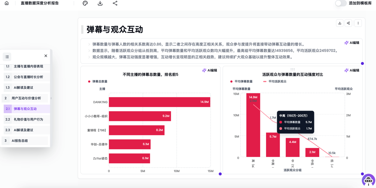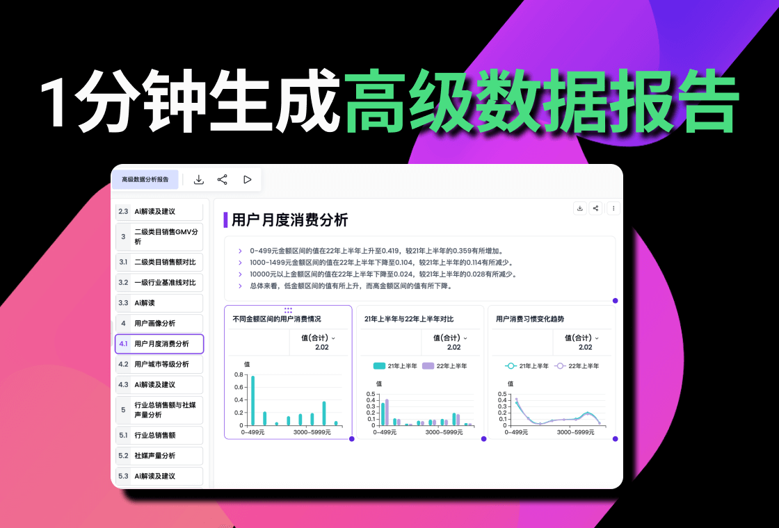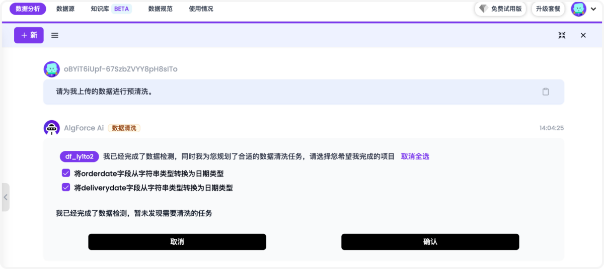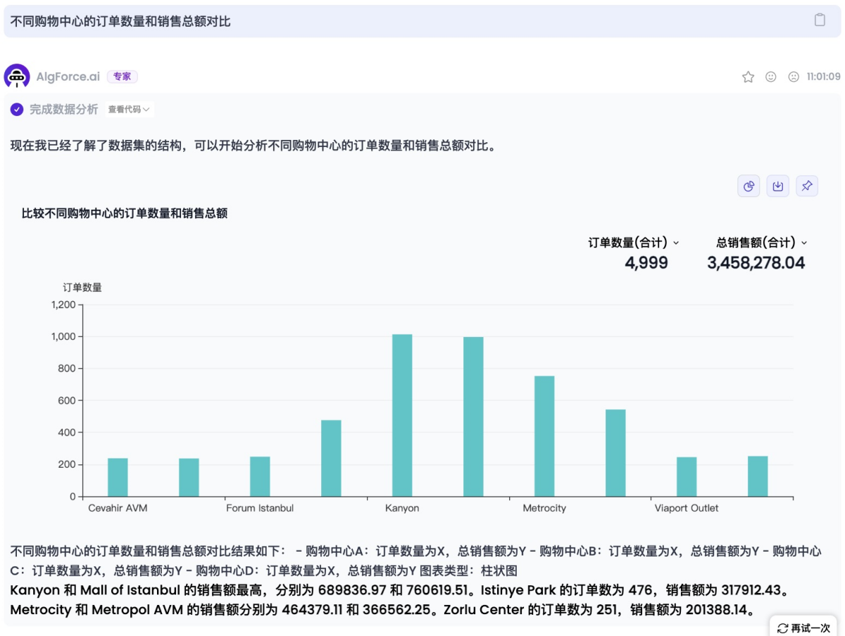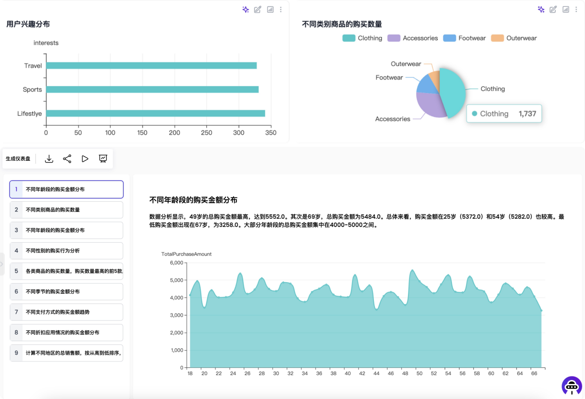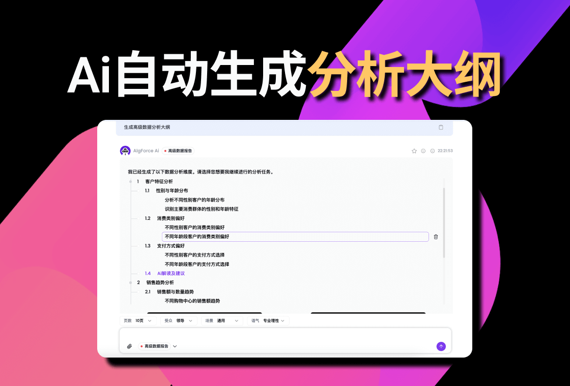 AlgForce Ai是一款专为数据问答和数据报告生成而设计的 AI 助手。使用各种大型语言模型 (LLM),为每个任务找到最佳模型,并根据您的提示编写代码来分析您的数据。最终结果是您无需编写代码和函数,只需要几分钟,即可生成10-25页逻辑清晰、图表丰富、包含文字解读的数据分析报告,让每个人都能快速制作专业的数据分析报告。AlgForce Ai是私人数据智能助手,上传Excel文件,AlgForce Ai瞬间为您生成数据分析大纲,几分钟即可为您生成20页逻辑清晰、图表丰富的高级数据分析报告;24小时在线,实时为您解决数据问题。