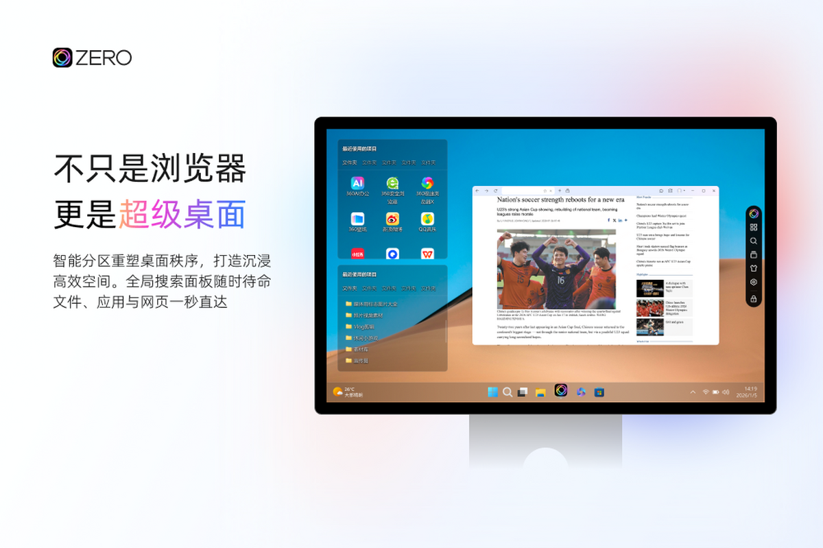 智能分区重塑桌面秩序,打造沉浸高效空间。全局搜索面板随时待命文件、应用与网页一秒直达