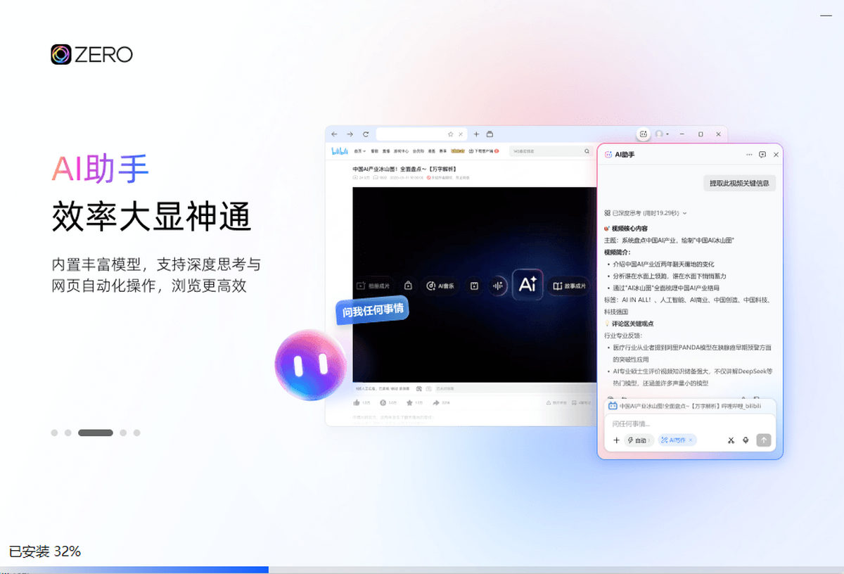 内置丰富模型,支持深度思考与网页自动化操作,浏览更高效
