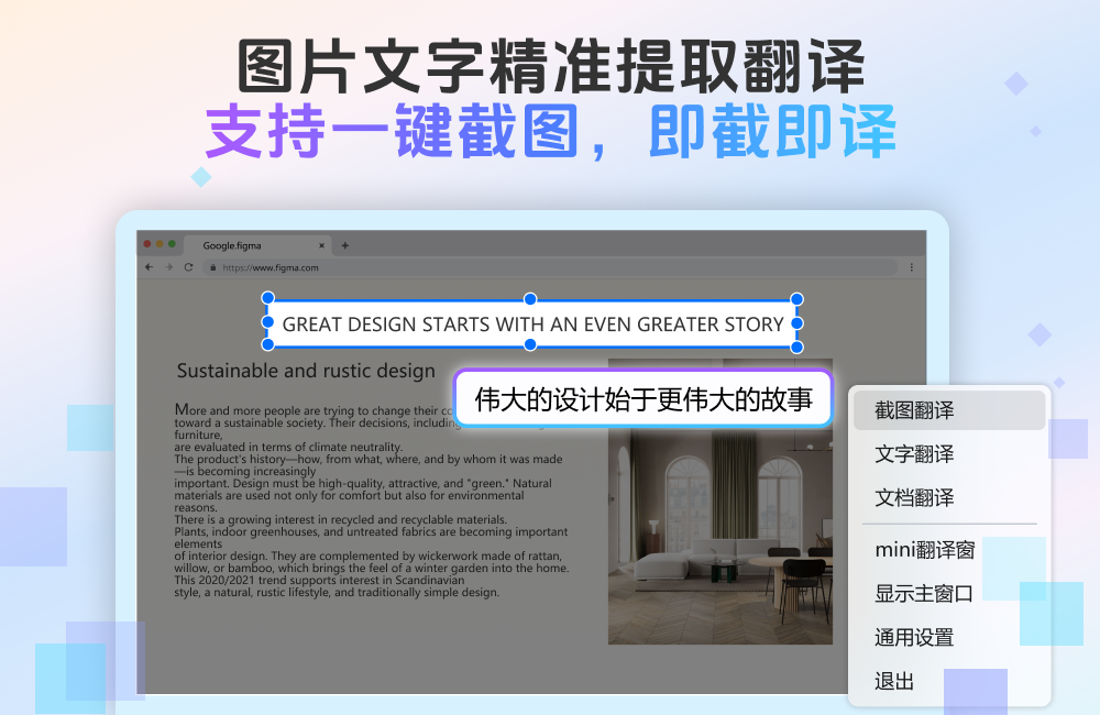 直接上传图片,精准提取并翻译图中文字。支持一键截图,即时识别翻译。